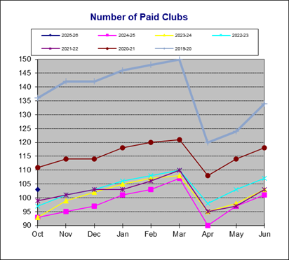 | Number of Paid Clubs | Distinguished | ||||||||||||||||||||||