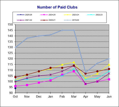 | Number of Paid Clubs | Distinguished | ||||||||||||||||||||||