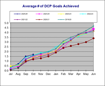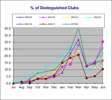 | Distinguished Clubs | Average # of DCP Goals Achieved | Club | PerCent | ||||||||||||||||||||