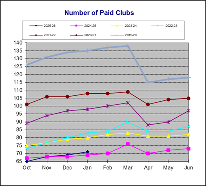 | Number of Paid Clubs | Distinguished | ||||||||||||||||||||||