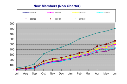 | New Members (Total for the Year - non Charter Members) | Club | PerCent | |||||||||||||||||||||
